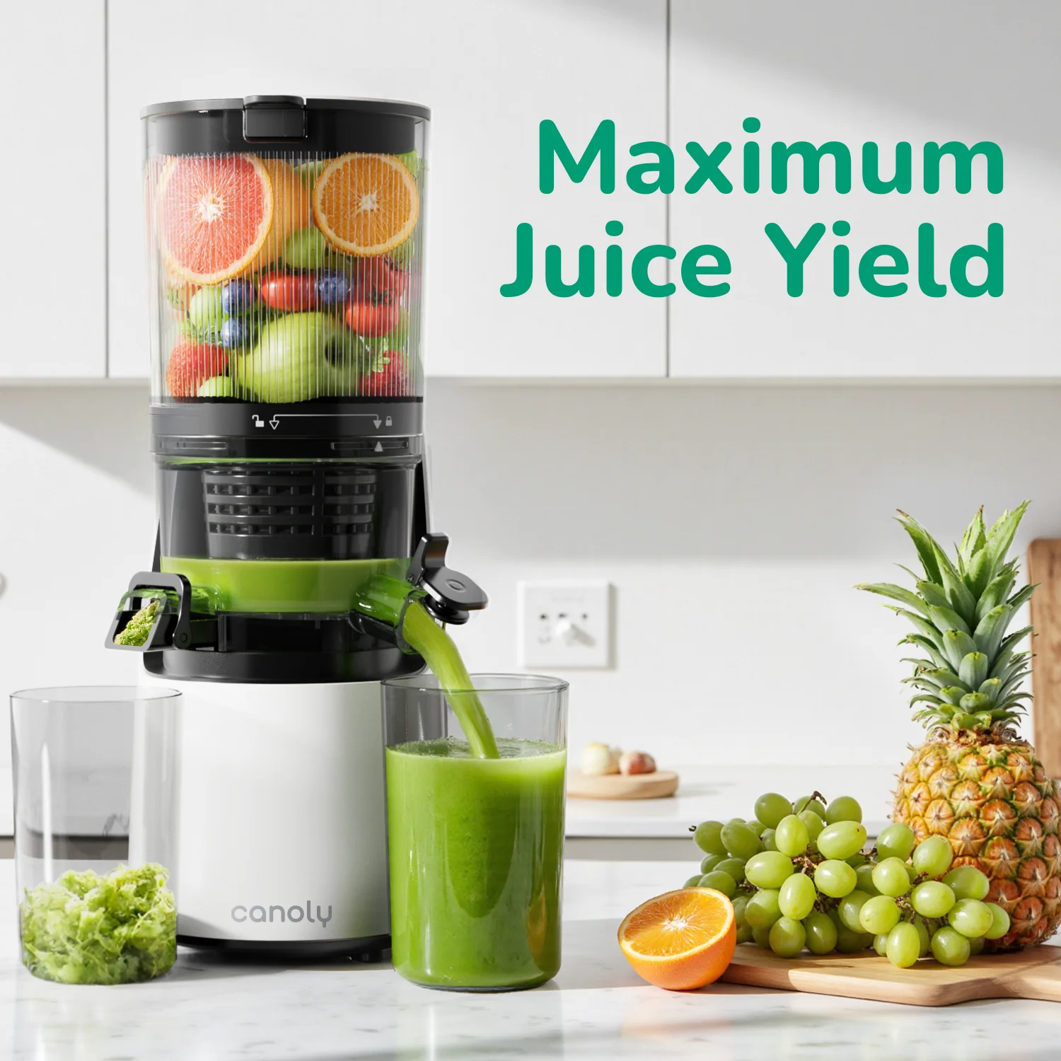 - Effortless Juicing: The Canoly C16 features a 6-inch wide chute, allowing whole fruits and vegetables to be loaded for hands-free juicing with its 250W brushless motor.