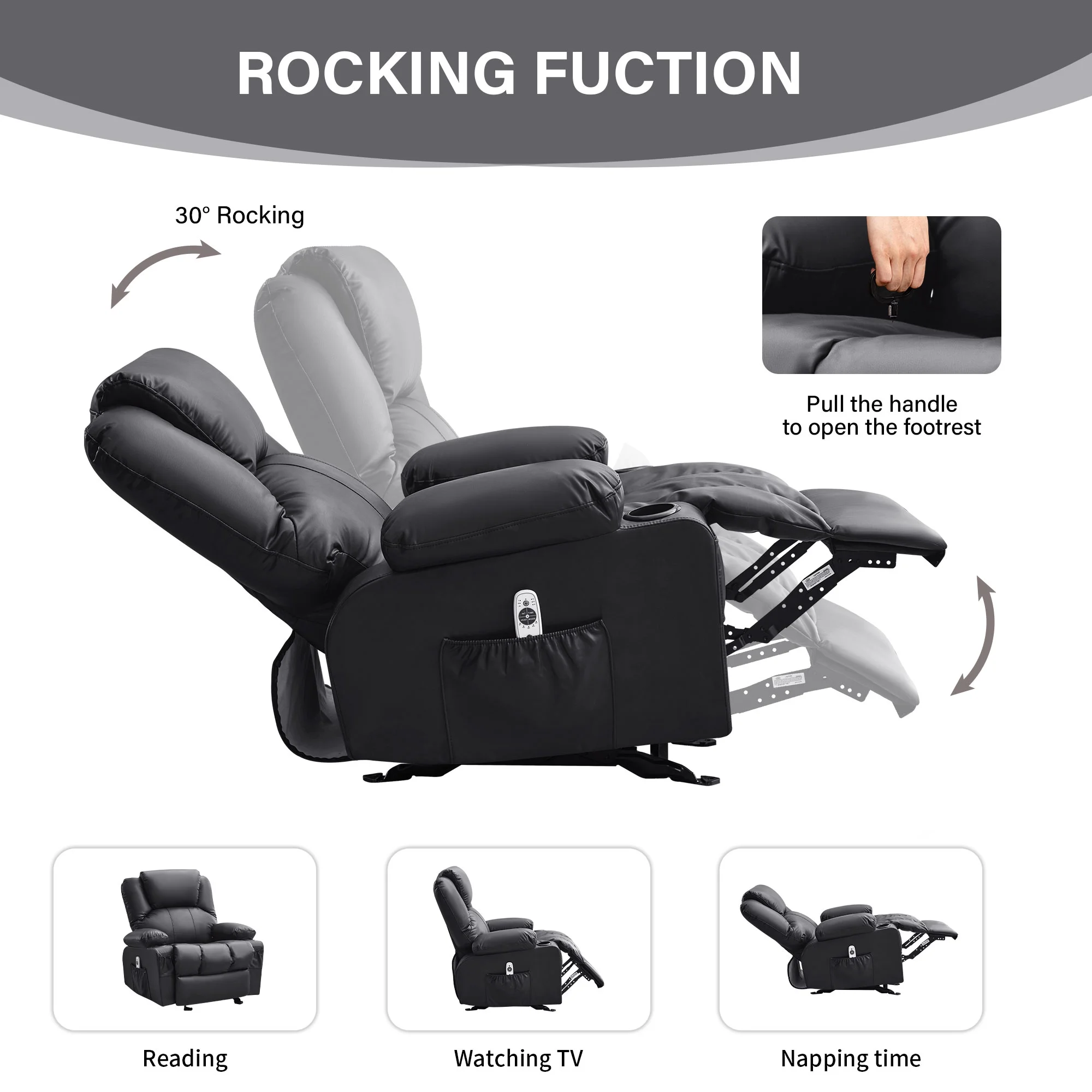 - Therapeutic Comfort: Features heat therapy and an 8-point massage function for full-body relaxation, complemented by thick seating, backrest, and extra lumbar support for enhanced comfort.